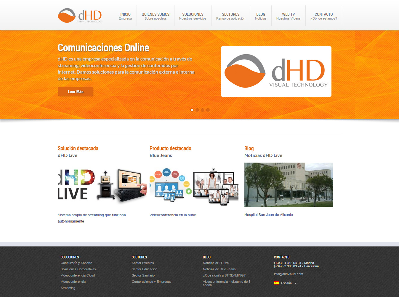 [vc_row margin_top=»-30″ margin_bottom=»15″ padding_left=»40″ padding_right=»40″ bg_position=»top» bg_repeat=»no-repeat» bg_cover=»false» bg_attachment=»false» padding_top=»40″ padding_bottom=»40″ parallax_speed=»0.1″][vc_column width=»1/1″ offset=»vc_col-lg-8 vc_col-md-8 vc_col-xs-12″][vc_empty_space height=»40px»][vc_column_text] dHD Visual [/vc_column_text][vc_empty_space height=»16px»][vc_column_text] dHD Visual Technology es una empresa ubicada en el 22@ de Barcelona y con oficina en Madrid especializada en el diseño de servicios multimedia para la distribución de contenidos audiovisuales en internet, tanto en directo…