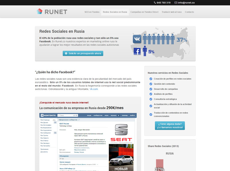[/vc_column_text][vc_empty_space height=»16px»][vc_column_text]Empresa de marketing online rusa dedicada a que empresas españolas puedan introducirse en el mercado ruso a través de internet y conquistar de esta forma clientes rusos.[/vc_column_text][vc_empty_space height=»30px»][vc_column_text]